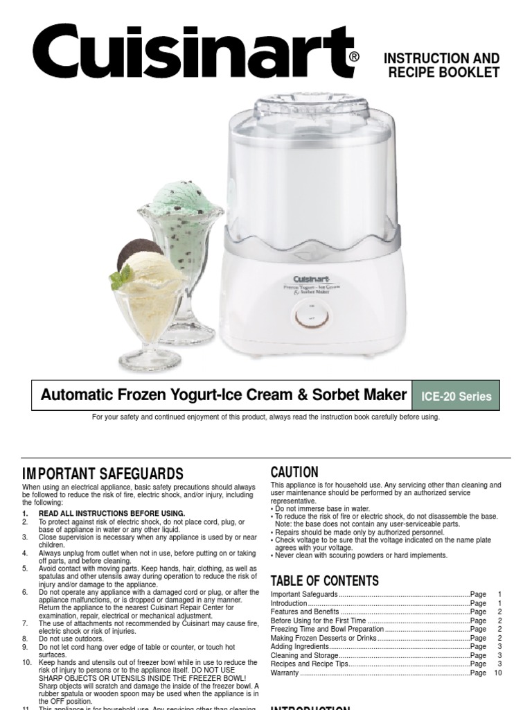 Automatic Frozen YogurtIce Cream & Sorbet Maker Instruction And Cuisinart Ice Cream Maker Recipe Book buy cuisinart ice cream maker cookbook 2021: this comprehensive guide offers 101 meticulously crafted recipes designed to bring out the best in your cuisinart ice. See all formats and editions. the cuisinart ice cream maker recipe book offers a delightful journey into homemade ice cream creation. find delicious frozen dessert recipes for your cuisinart ice cream. Cuisinart Ice Cream Maker Recipe Book.